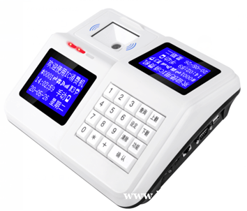 (5)、消费机安装于各消费窗口,双面显示,一面显示面向就餐者,带操作键盘显示面向收银员。