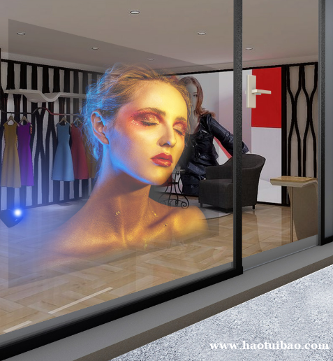 1、全息透明膜/透明膜并非完全透明的,透明度大约90%,主要用于橱窗展示区贴于透明玻璃上。投影时室内室外均能看到投影图像,不放投影时外面行人或路人能看到室内物品或摆设。