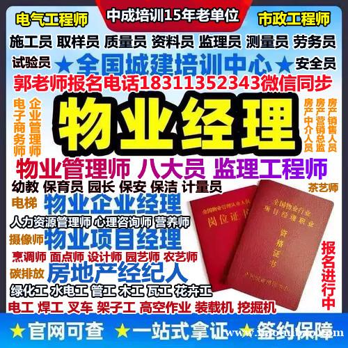 建筑八大员施工员安全员预算员报名联系郭老师质检员测量员监理员材料员资料员劳务员质量员报名联系郭老师取样员合同员档案员等建筑项目经理监理工程师报名中建筑八大员培训费850元/人,全国监理工程师培训1350含教材报名联系郭老师